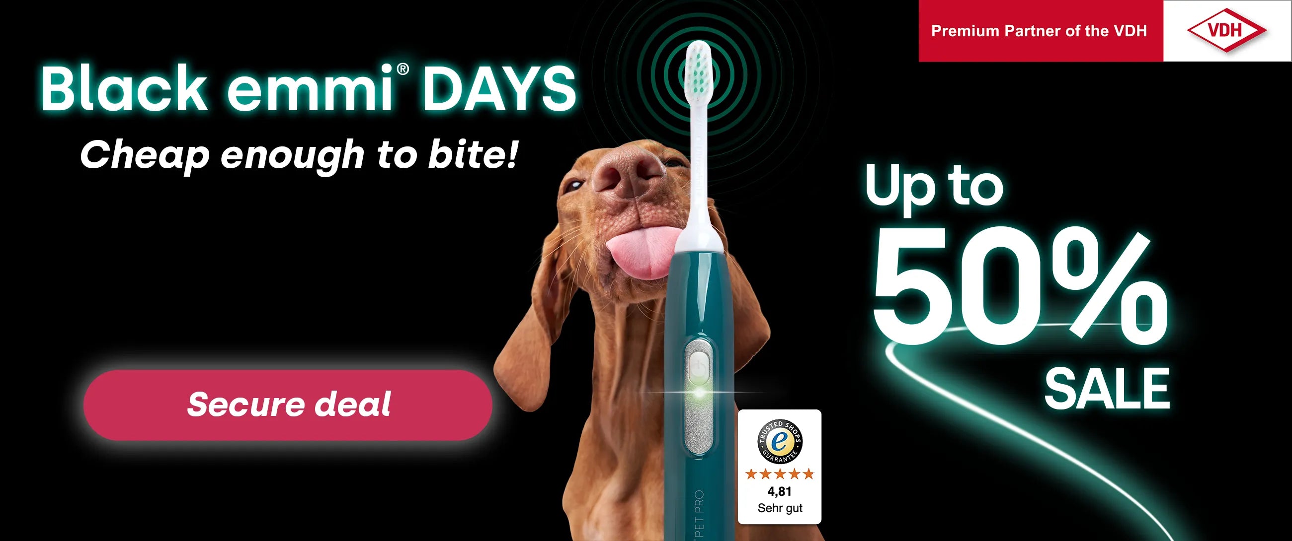 The right dog supplies play a crucial role in the well-being of your loyal companion. At emmi-pet, animal lovers will find a wide range of high-quality dog accessories that are specifically designed to promote the health and well-being of your dog. With our innovative emmi-pet ultrasonic toothbrush, you can take care of your dog's teeth in a stress-free way - without any scrubbing or noise!