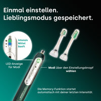 Die emmi-pet Aufsteckbürsten sind das Herzstück des Systems und wurden exakt auf die Leistung der emmi-pet NEO Ultraschallzahnbürste abgestimmt. Ob im sanften Modus für sensible Bereiche oder im Intensiv-Modus bei hartnäckigem Zahnbelag: Die patentierte Ultraschall-Technologie erreicht selbst tiefe Zahnfleischbereiche, die mit herkömmlichen Borsten nur schwer zugänglich sind.