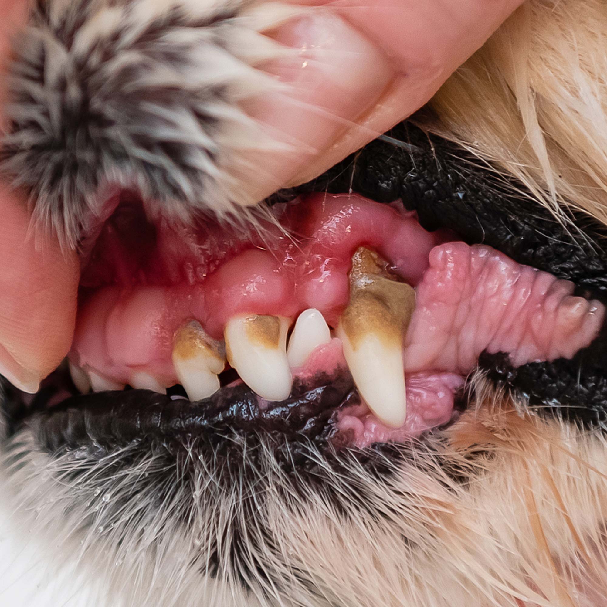 Bereits nach wenigen Tagen ohne Zahnpflege wird der Biofilm zu Belag, der schnell zu Zahnstein verhärtet. Dies führt zu schmerzhaften Entzündungen, Mundgeruch und erhöhtem Risiko für Erkrankungen wie Herz- oder Nierenprobleme. Eine schlechte Zahnhygiene beeinträchtigt direkt die Gesundheit und Lebensqualität Ihres Hundes.
