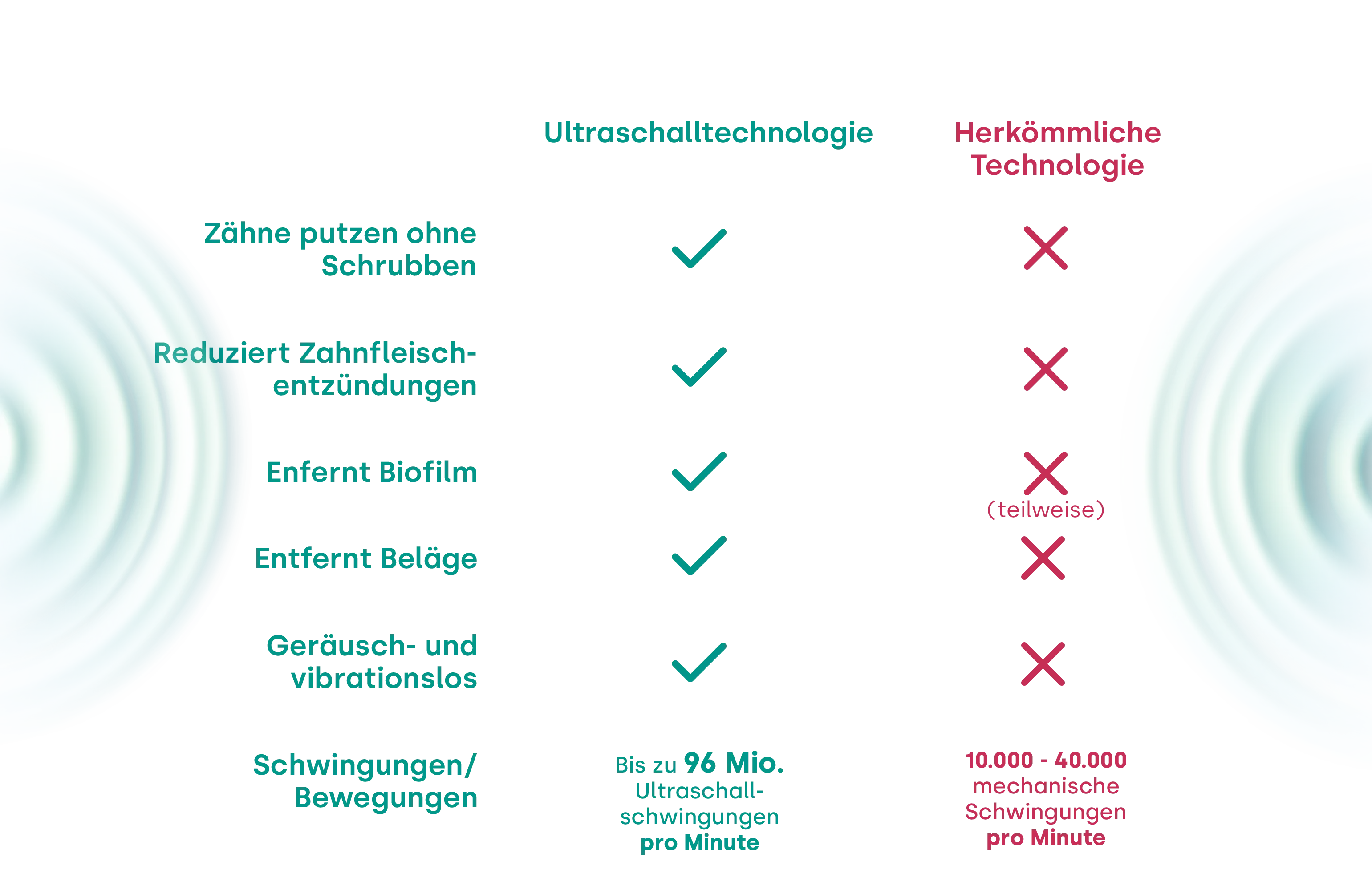 - Bis zu 96 Millionen Ultraschallschwingungen pro Minute