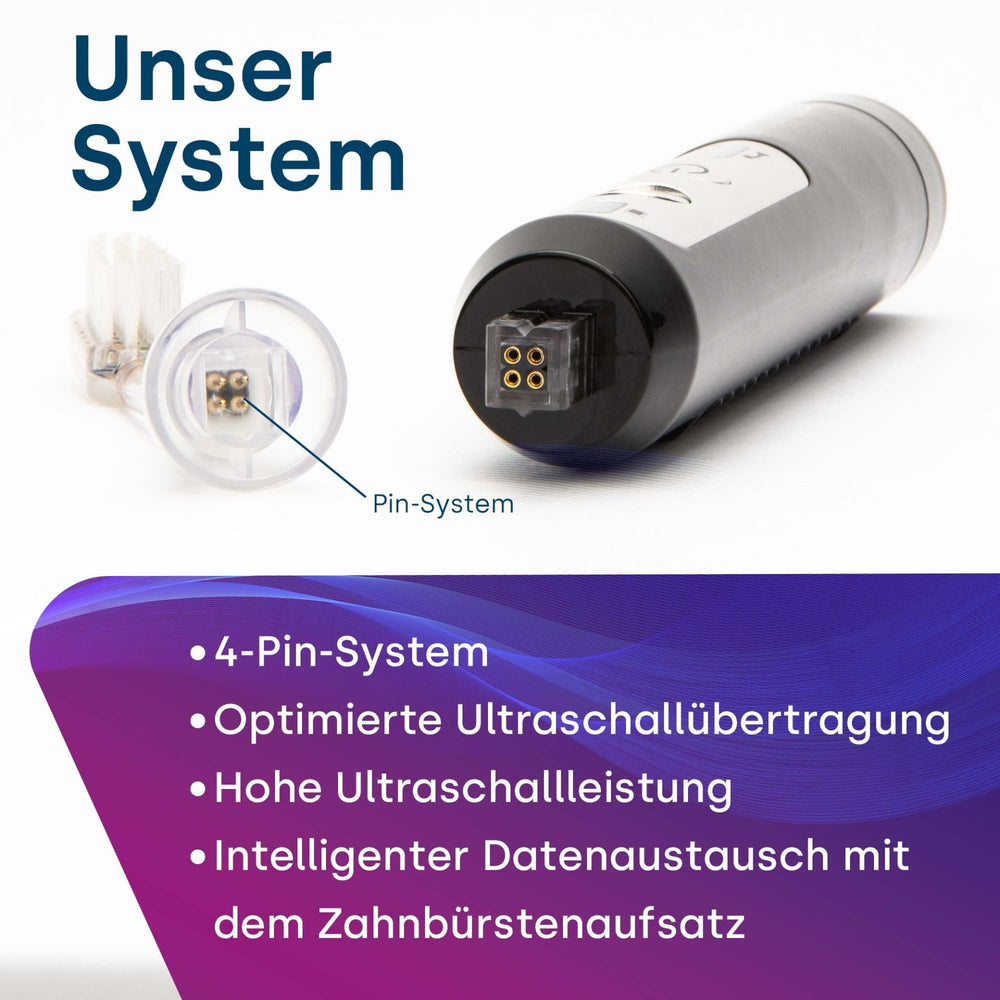 • Intelligentes 4-Pin-System: Optimierte Ultraschallübertragung für maximale Effizienz und intelligente Kommunikation mit dem Bürstenkopf.