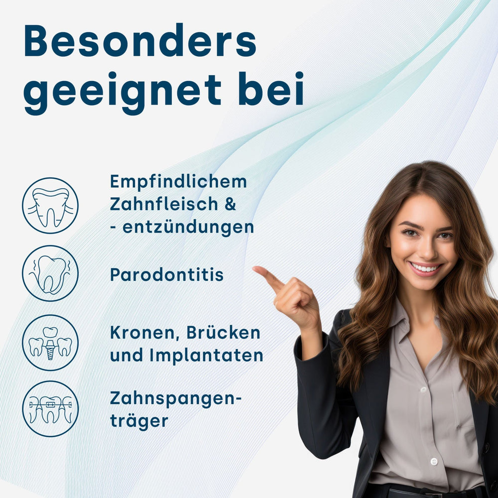 • Sanft: Für empfindliche Zähne und Zahnfleisch.