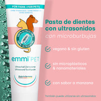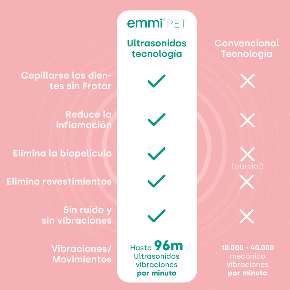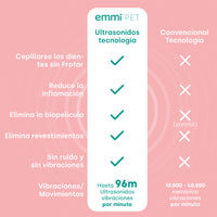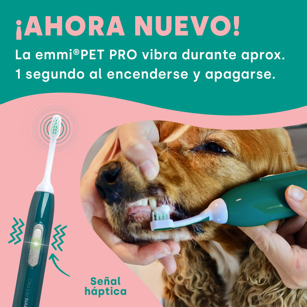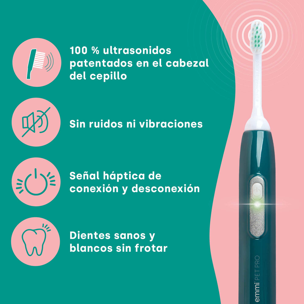 El cepillo de dientes ultrasónico Emmi Pet es una opción suave y silenciosa para el cuidado dental del perro.Gracias a la tecnología de ultrasonido, que genera impresionantes 96 millones de vibraciones por minuto, es posible cepillarse los dientes sin fregar.