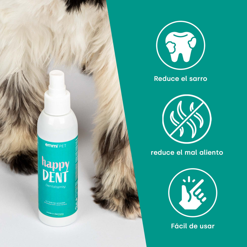 El cepillado regular con pasta de dientes especial para perros es esencial para prevenir el tártaro en los perros.Para una atención efectiva, se recomienda el uso de un cepillo de dientes de ultrasonido, como la PET EMMI, que puede limpiar sin fregar y aflojar el tártaro de la luz, que luego se elimina mecánicamente y sin dolor y sin anestesia.