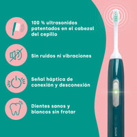 Los cepillos de dientes que funcionan con ultrasonido han revolucionado cepillarse los dientes desde 2013.La ventaja decisiva sobre los cepillos de dientes manuales clásicos o los cepillos de dientes eléctricos es que los cepillos de dientes de ultrasonido funcionan casi no contactos y sin movimientos mecánicos.Esto hace que la limpieza sea particularmente suave y sin embargo confiable.