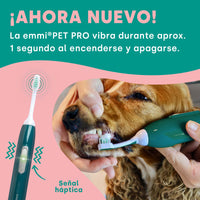 El cepillo de dientes de ultrasonido PET EMMI también es adecuado para perros pequeños y se puede usar en animales jóvenes porque se entrega con una cabeza de cepillo pequeña especialmente diseñada.