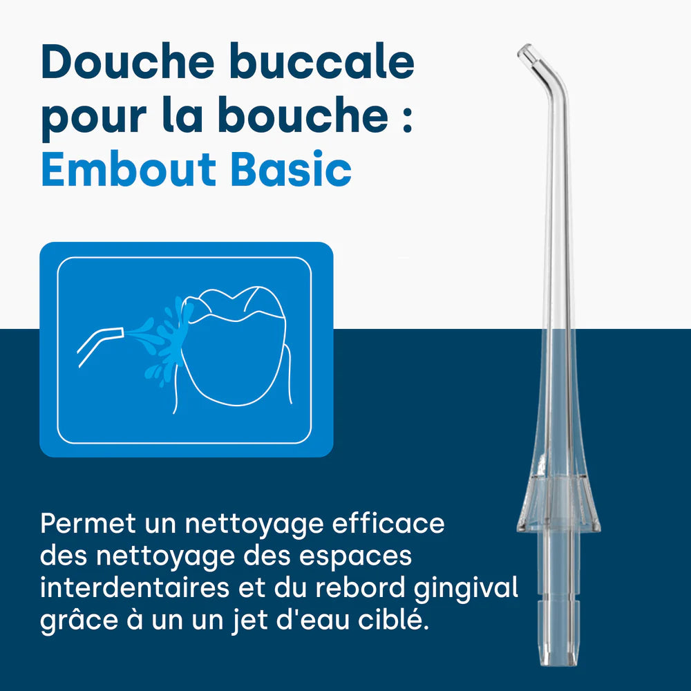 Nous avons l'embout de buse parfait pour chaque application ! Avec les quatre embouts de buse inclus, vous disposez de la buse adaptée à chaque tâche de nettoyage. Qu'il s'agisse d'appareils orthodontiques, de ponts ou d'implants, l'irrigateur buccal est idéal pour éliminer les dépôts dans les espaces entre les dents ou d'autres zones difficiles d'accès.