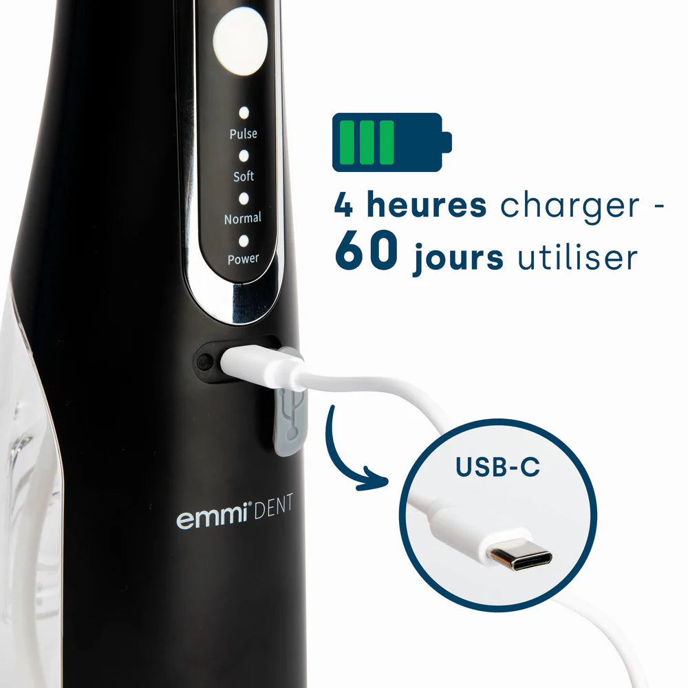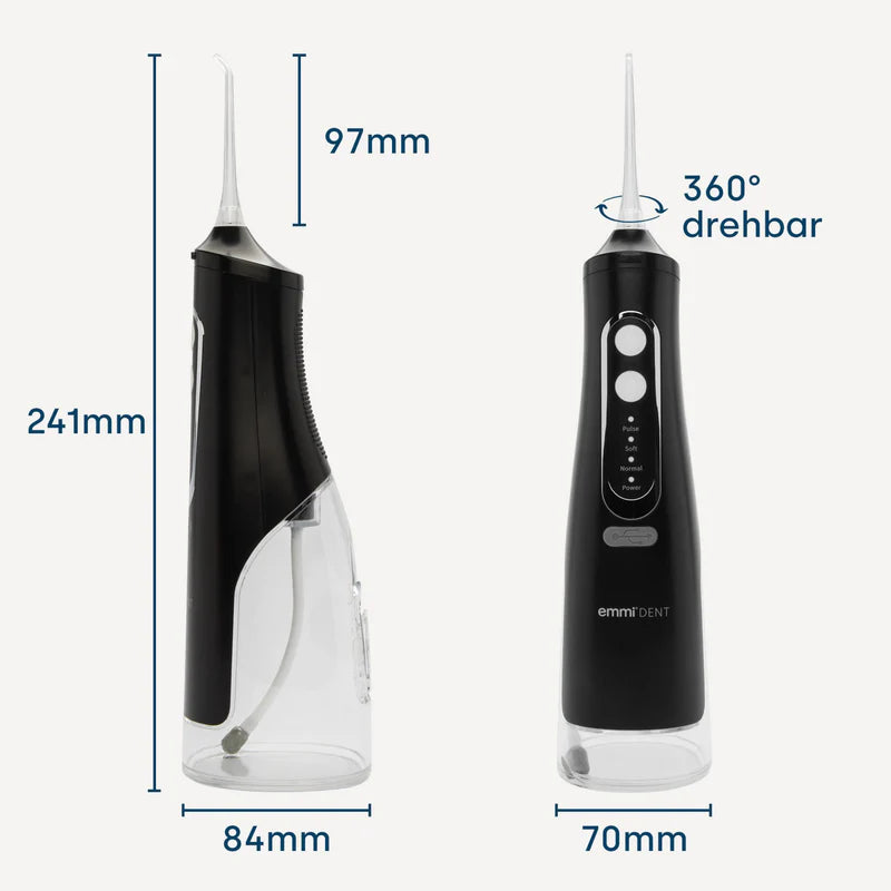 Pour nettoyer soigneusement et efficacement les espaces entre vos dents, le brossage des dents seul n'est souvent pas suffisant. Le emmi-dent Développement d'un irrigateur buccal. Pour protéger contre les problèmes de gencives–là où les brosses à dents conventionnelles ne peuvent pas atteindre. Par rapport au fil dentaire, emmi-dent Irrigateur buccal pour un nettoyage parfait même en cas de dents rapprochées ou d'espaces interdentaires difficiles à atteindre. L'appareil dispose de quatre modes : pulsé, doux, normal et fort. Avec les quatre embouts de buse inclus, vous disposez de la buse adaptée à chaque tâche de nettoyage. Nous recommandons de remplacer les buses tous les 3 mois.