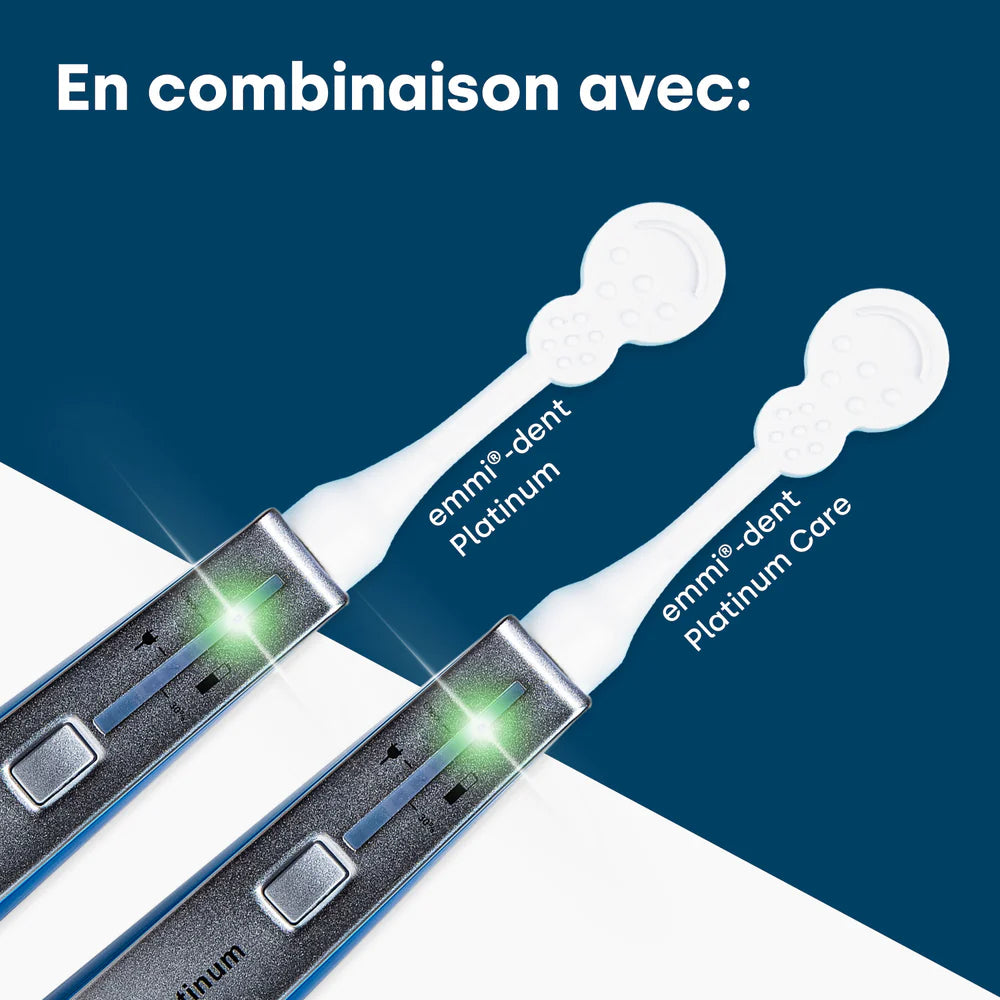 Veuillez noter que la tête de brosse à ultrasons du emmi-dent Platinum exclusivement pour le nettoyage des dents et l'hygiène bucco-dentaire avec le modèle Premium Emmi-dent Platine peut être utilisé.