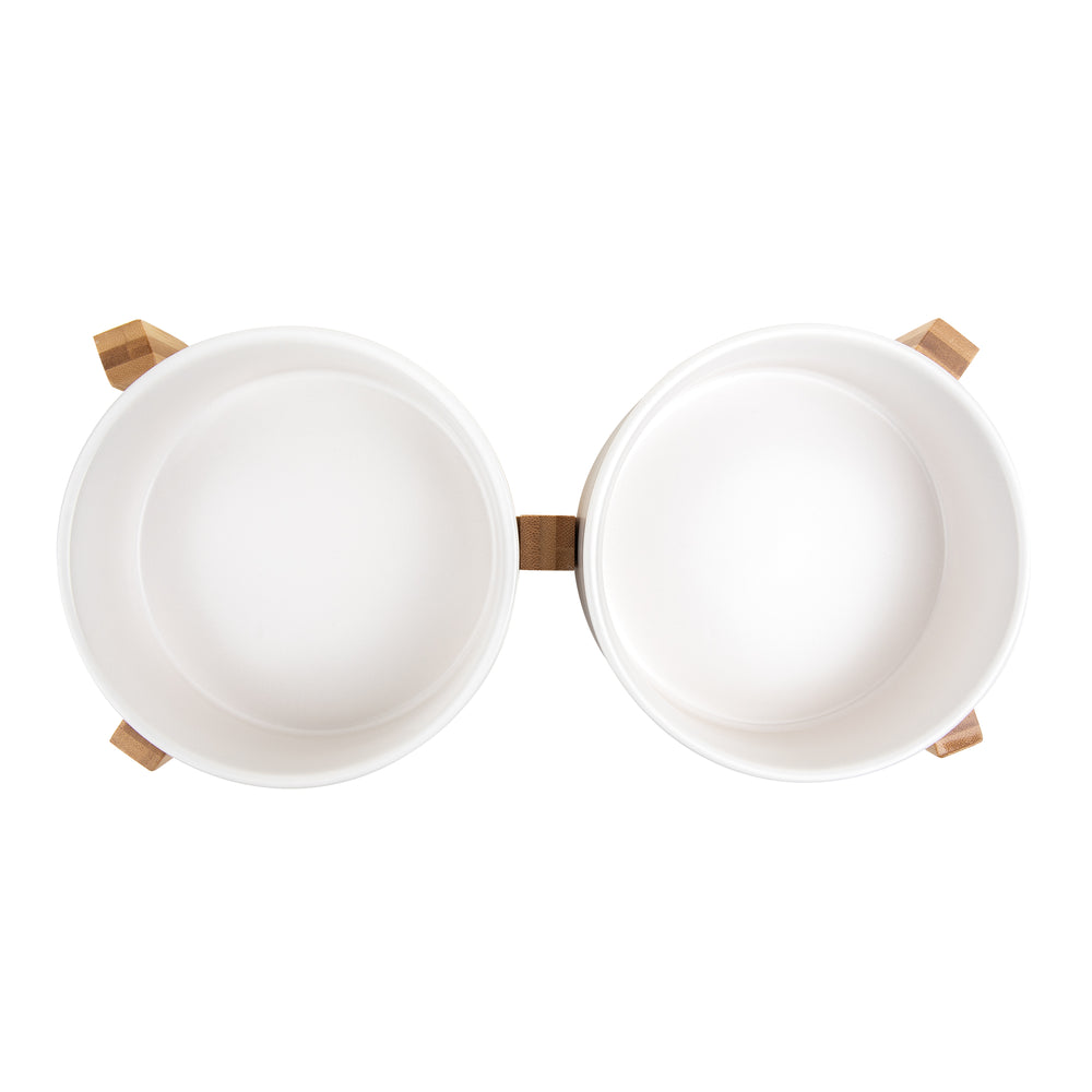bol d'eau et bol de nourriture avec cadre en bambou