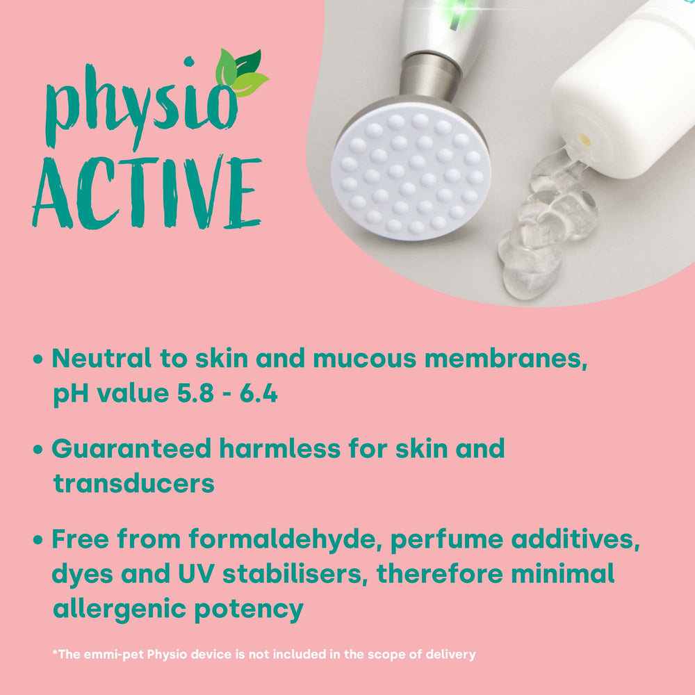 IL emmi-animale domestico Il gel per ultrasuoni Physio Active è appositamente studiato per l'uso esterno e garantisce una trasmissione ottimale degli ultrasuoni. Grazie al suo pH neutro per la pelle e le mucose pari a 5,8-6,4, il gel è particolarmente delicato e delicato. Viene prodotto in condizioni di vuoto, il che lo rende assolutamente privo di bolle e acusticamente preciso. IL emmi-animale domestico Il gel per ultrasuoni Physio Active è garantito come innocuo per la pelle e per le sonde ecografiche.