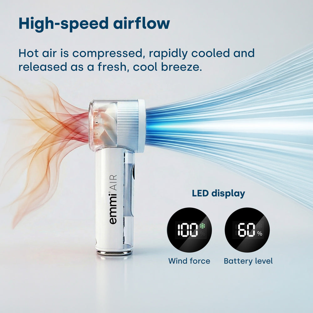Ventilatore portatile emmi-AIR – Raffreddamento compatto con funzione di raffreddamento extra
