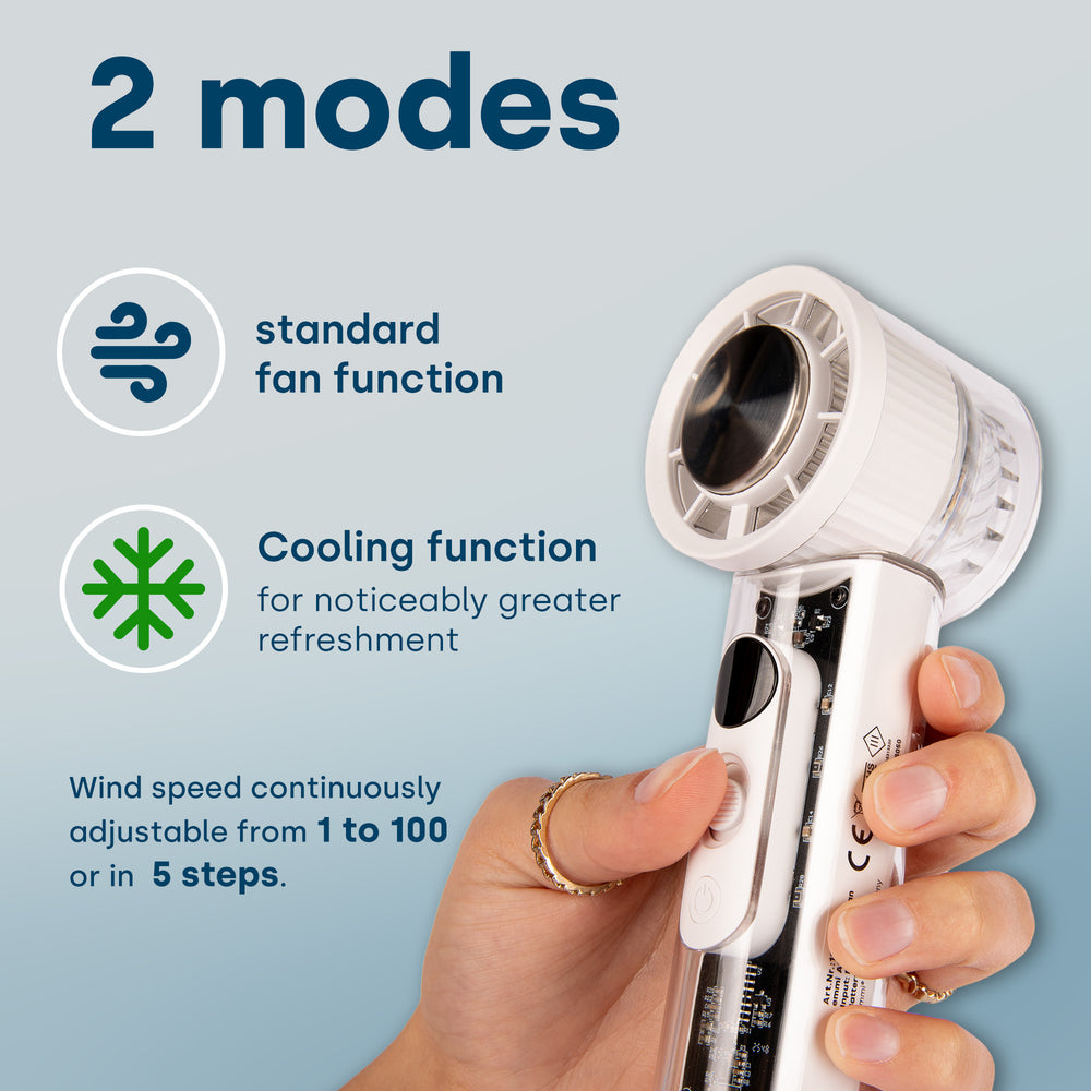 Grazie alle sue dimensioni pratiche, il ventilatore si adatta facilmente alla tua borsa. Ideale per viaggi, festival, ufficio o tempo libero – il tuo boost di freschezza personale per ogni situazione.