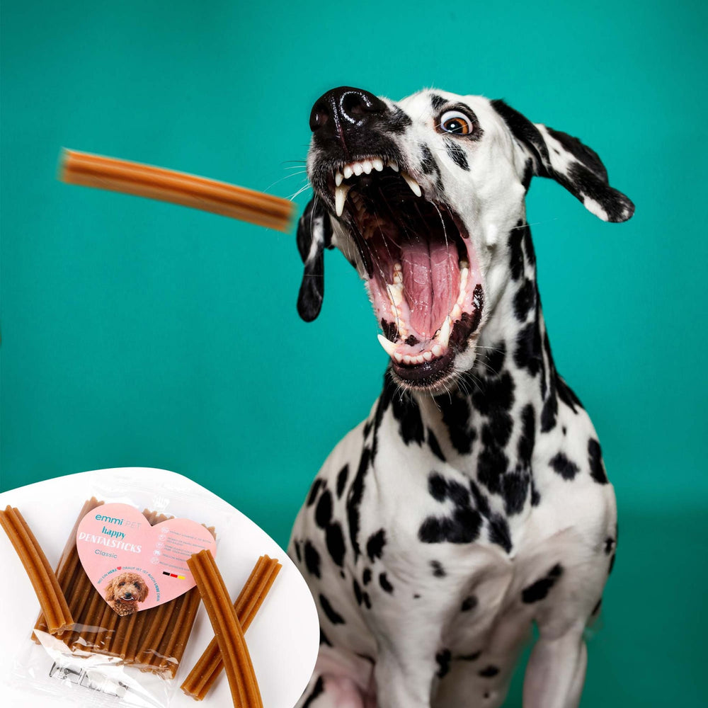 The emmi-pet Dental Sticks "Classic" are just one part of our dental care products. We have thought of every need and every dog breed. Whether for puppies, large dogs or sensitive gums - discover our chew sticks and dog toothbrush to take your four-legged friend's oral hygiene to a new level.