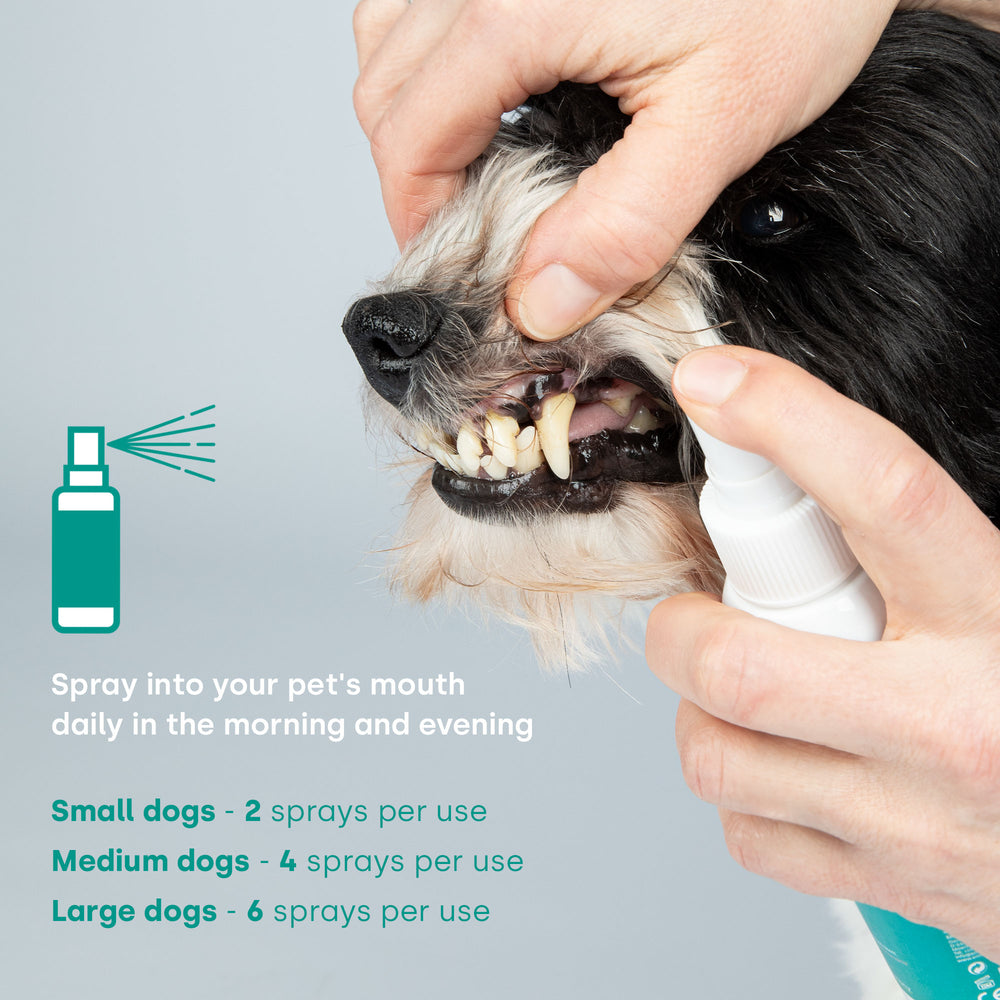 • Spray into your pet's mouth every morning and evening