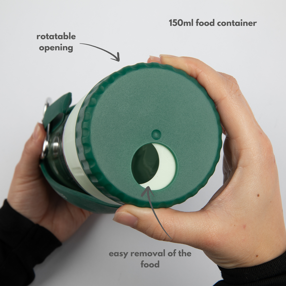 • Integrated snack container: Extra 150 ml for food or snacks - perfect for small rewards on the go.