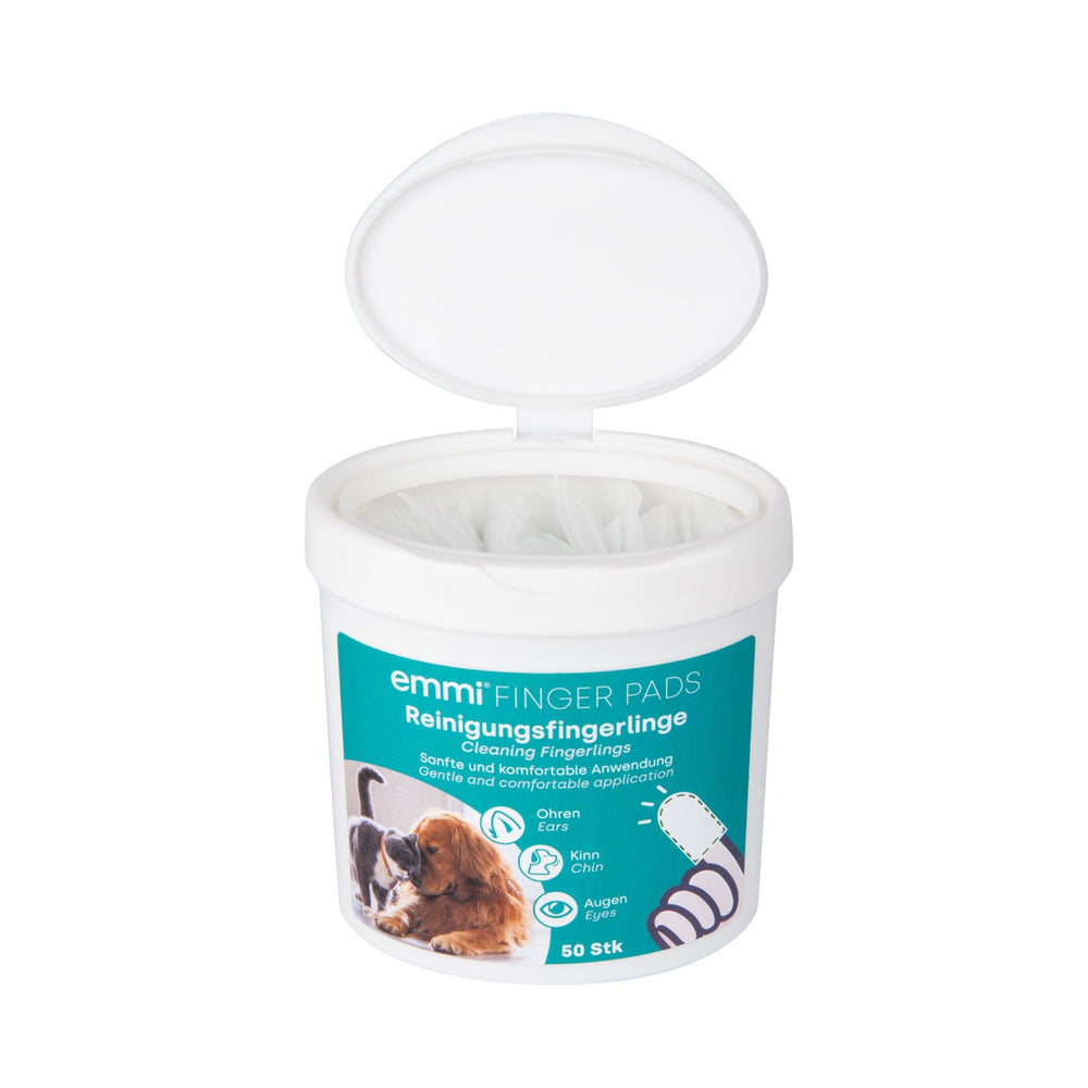 Discover our innovative emmi-pet Pet cleaning finger cots specially designed to make ear, chin and eye care easier. The high-quality finger cots made of soft non-woven fabric effectively clean dirt and help your beloved pet stay clean. Sensitive areas are thoroughly cleaned thanks to the soft surface of the cleaning cloths.