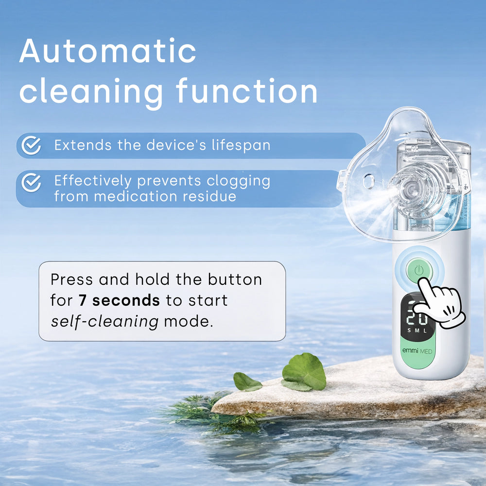 The emmi-MED inhalation device represents state-of-the-art inhalation technology and maximum user comfort. Thanks to its fine, delicate particles, the active ingredient reliably reaches the airways – for particularly effective and gentle inhalation. The silent nebulization makes the device ideal for children, sensitive individuals, and nighttime use.