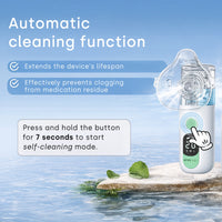 The inhalation device is compact, lightweight (approx. 0.2 kg) and rechargeable – perfect for home, travel or on the go. The easy-to-read super-LCD display clearly shows the operating status.