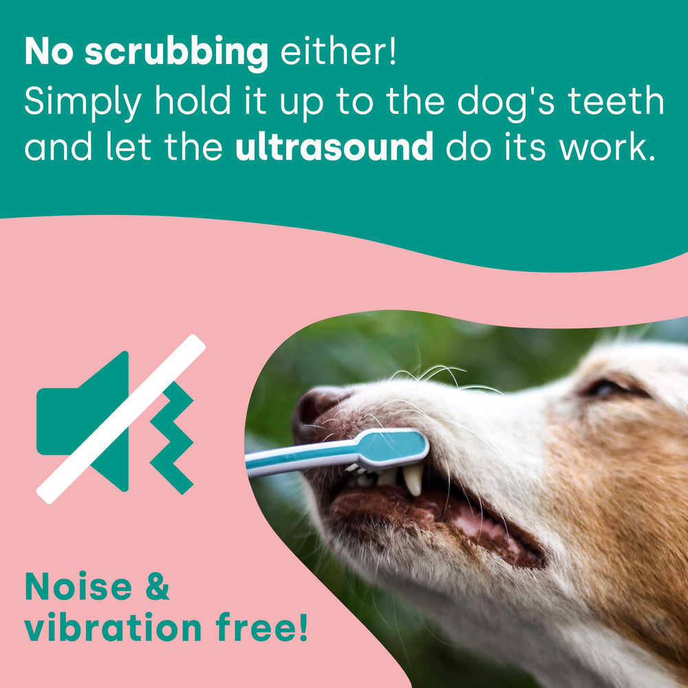 This brush's patented ultrasonic technology operates silently and vibration-free, making it especially appealing to sensitive dogs. Many dogs who are sensitive to the noise and vibration of traditional toothbrushes respond much better to this technology, making oral care a stress-free experience for both of you.