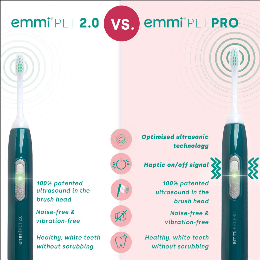 Experience the next generation of 100% ultrasonic dog toothbrushes with the new emmi-pet PRO – now with innovative features that make dental care for your pet even easier and more effective. The optimized technology ensures maximum cleaning performance while your four-legged friend continues to enjoy a stress-free, gentle experience.
