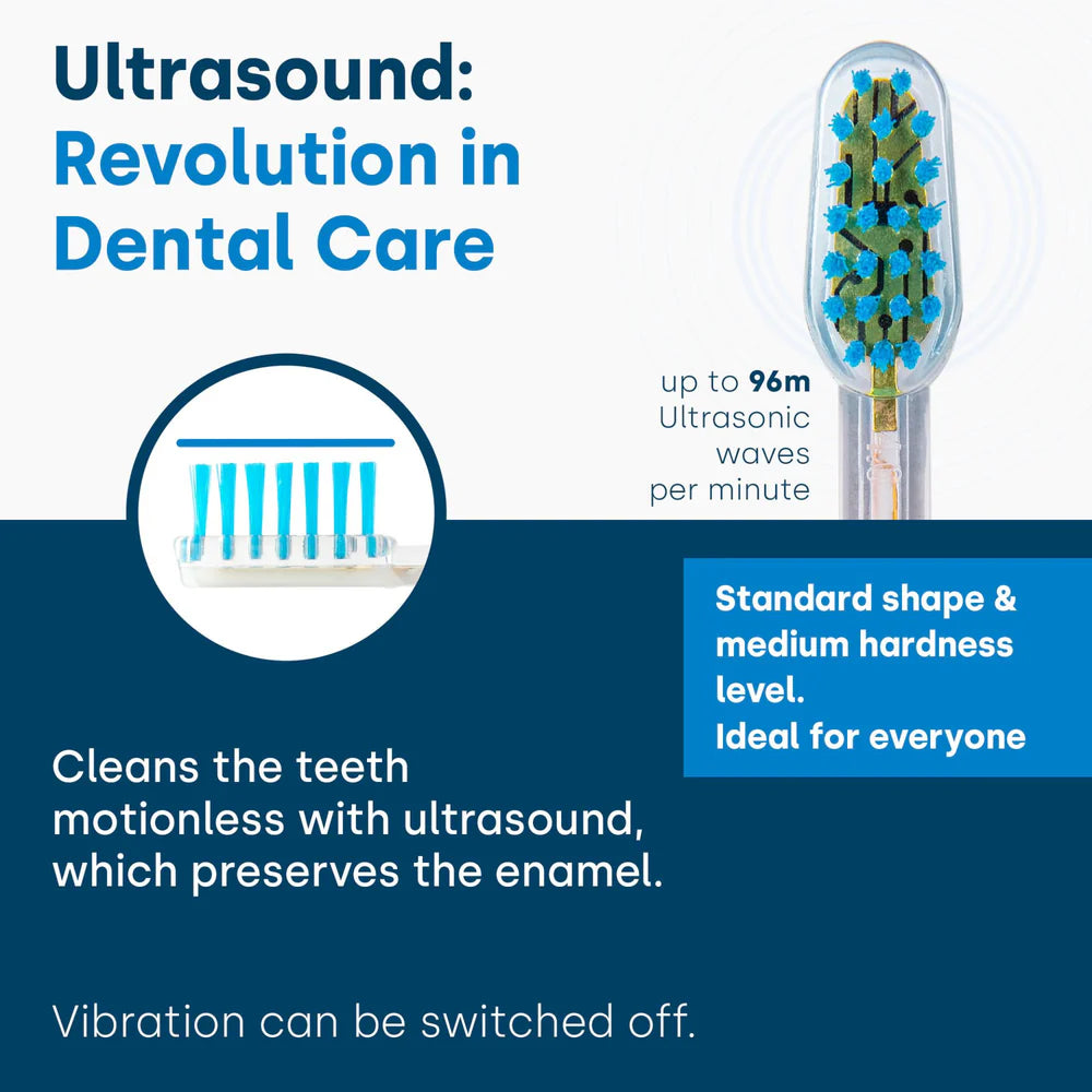 This brush heads should be changed after 3 months of use at the latest. After this period, the ability of the bristles to transmit 100% of the ultrasound weakens and optimal tooth cleaning and oral hygiene is no longer guaranteed.