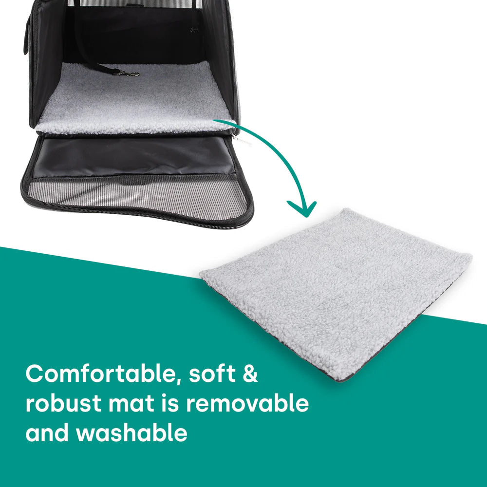 No matter whether you are travelling with your four-legged friend by car or plane or going on a trip - the emmi-pet Travel Bag Large offers you a safe and comfortable solution to always have your four-legged companion with you. Invest in the safety and well-being of your pet with this high-quality travel transport box.